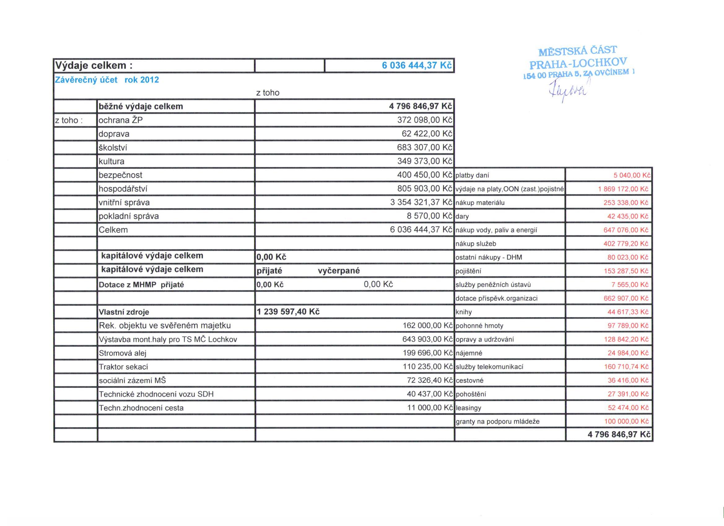 Závěrečný účet 2012 - výdaje